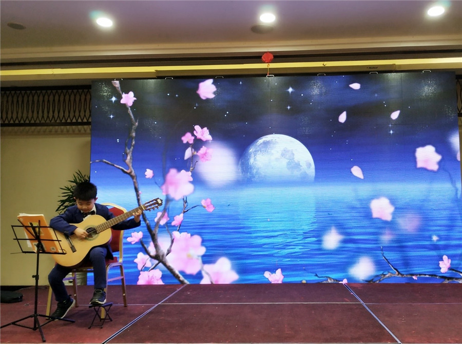 看看這位西裝革履的帥小伙,代表男神家駒給我們帶來(lái)吉他獨(dú)奏《小步舞曲》《遠(yuǎn)足》。